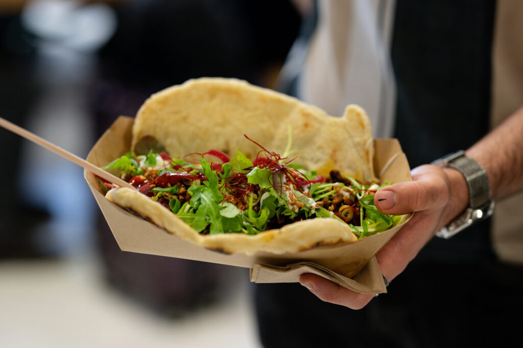 Dass Käse nicht ausschließlich aus Milch, sondern auch aus Cashewkernen produziert werden kann, das beweisen Alice und Freddy, das Gründungsduo der veganen Käserei NewRoots. Auch bei der Manufaktur Petit Veganne aus Frankreich gibt es pflanzlichen Käse, während Nutarally mit Mus-Varianten, Ölen und Mehlen aus der Nuss die Gäste begeistert. Und wer griechische Spezialitäten mag, sollte sich den Stand von Apostels merken. Es gibt Zaziki, Sour Creme und Aioli – produziert auf Basis von Mandel- und Kichererbsenproteinen in Griechenland, wo sonst.